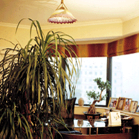 踏进张咪的家门的时候,就闻到若隐若现的檀香味道,进门看到主人果然有一个香案,斜斜地插一只檀香。客厅里布置了两只硕大的铜质香炉,平时主人会在里面燃一只蜡烛,让烛光透过镂空的花纹星点闪烁。在客厅一角不起眼的地方,有一张佛像,下面是一个剔透的格台,玻璃的隔层里面铺满了枯黄的银杏叶。这些陈设并不抢眼,沉默而内敛,正如同佛家给人的教诲。而这些也恰恰表达了主人的精神,成了主人家的精髓所在。