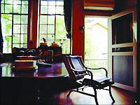 硕大的红木画桌摆在房子中央,墨盒、笔洗、镇纸仍在,保持着原来的模样,只有老人用惯的毛笔躺在抽屉里,夫人说怕尘土脏了笔锋,看得出来当年三毛是怎样跃于纸上,老人如何在台前用功。
