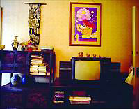 说起大师,一般人都认为出手不凡,事业很成功,生活颇奢侈,行为也旁若无人般,谓之有性格。其实我见到的几位都非常谦逊,甚至很淡泊,生活也清苦,一眼看去与常人无异,他们的家也简简单单,但你能感觉到他的文化沉积是无穷的。