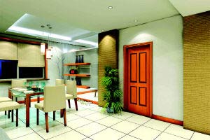 与阳光为伴的餐厅初稿的餐厅设计,酒柜的感觉虽然存在,但色彩及材质感十分僵硬,圆棚与整体室内风格不协调,光照不利表现就餐区整体环境。设计师与业主沟通后重新设计酒柜,试图改变酒柜的概念,“摆酒不一定非要酒柜”,它应成为就餐区的视觉中心。如此一来,既满足了居室的整体风格,又满足了摆酒与赏酒同步的需要,由此强调了在保持整体风格一致下的各种元素和谐统一地运用。
