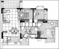 4.为方便偶然来访的客人,特意将靠近大厅的卧室设计成可兼作客房的书房;